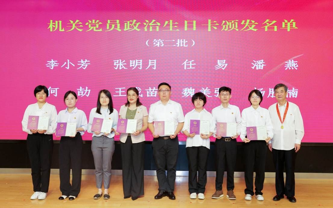 机关党委每年组织入党满五年、十年的机关党员集体过“政治生日”,引导党员不断筑牢信仰之基、补足精神之钙、把稳思想之舵。现场,获颁“光荣在党50年”纪念章的机关老党员代表分别为入党满五年、十年的党员代表颁发“政治生日纪念卡”。