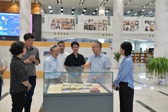 周斌等首先参观了图书馆二楼大厅正在举办的“青春正当时——追寻习近平总书记的读书脚步”展览,图书馆流通部为来宾介绍习近平总书记的读书生活。