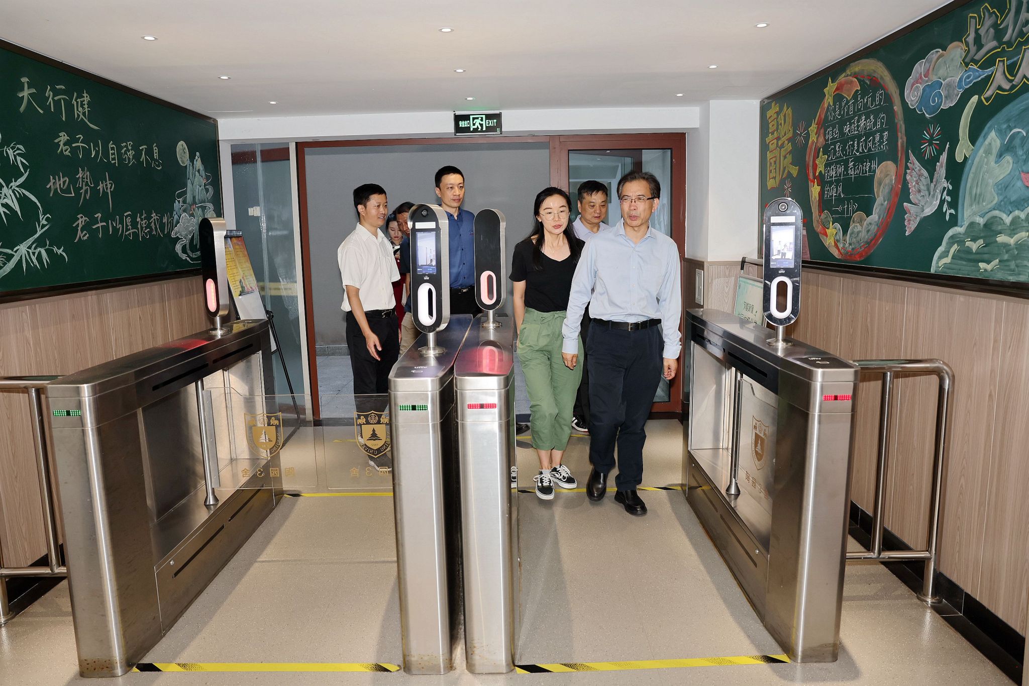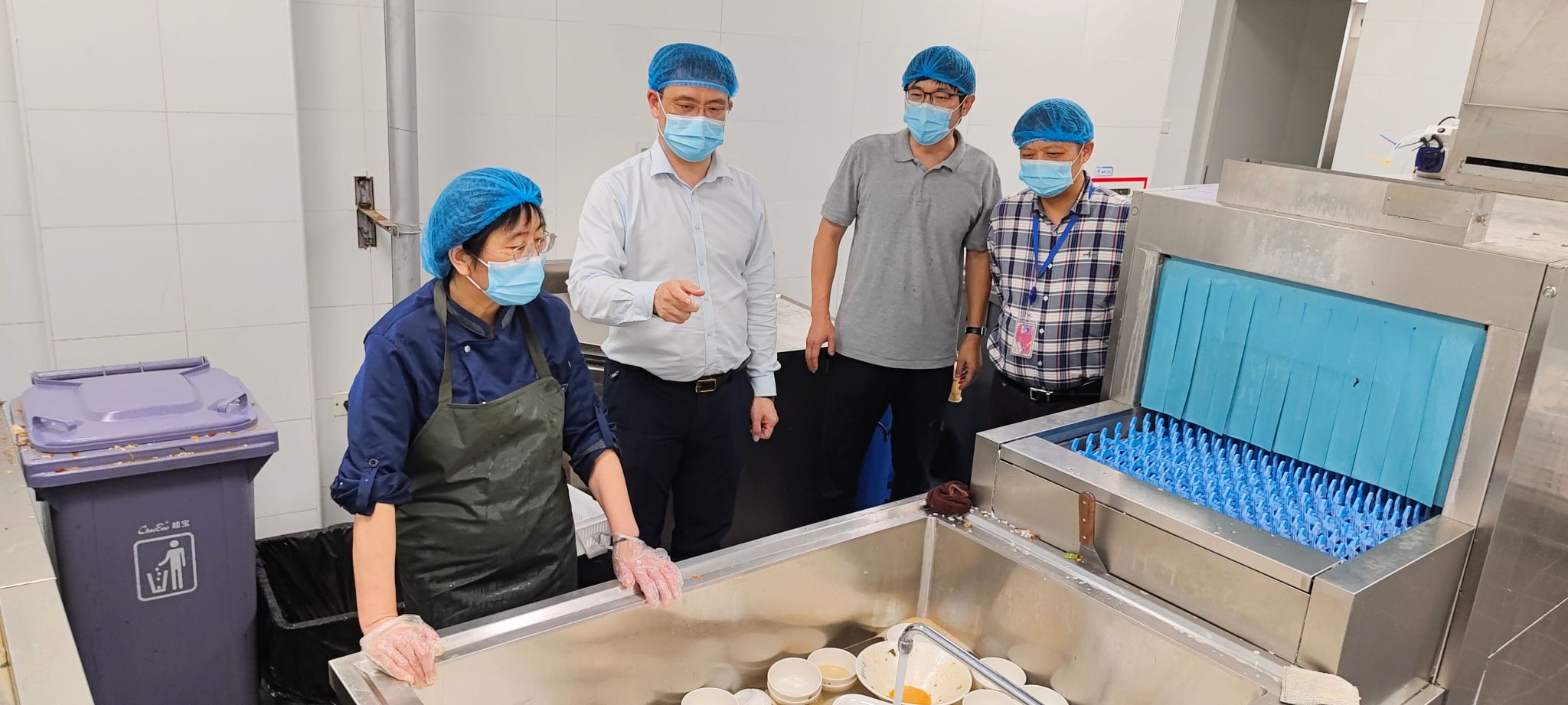校长助理索文斌在苏州校区检查了办公楼、教学楼和校区整体安全工作。在学生食堂、教室、校园保卫等地,他与相关工作人员细致交流询问,对食品安全、消防安全、水电保障等提出明确要求。