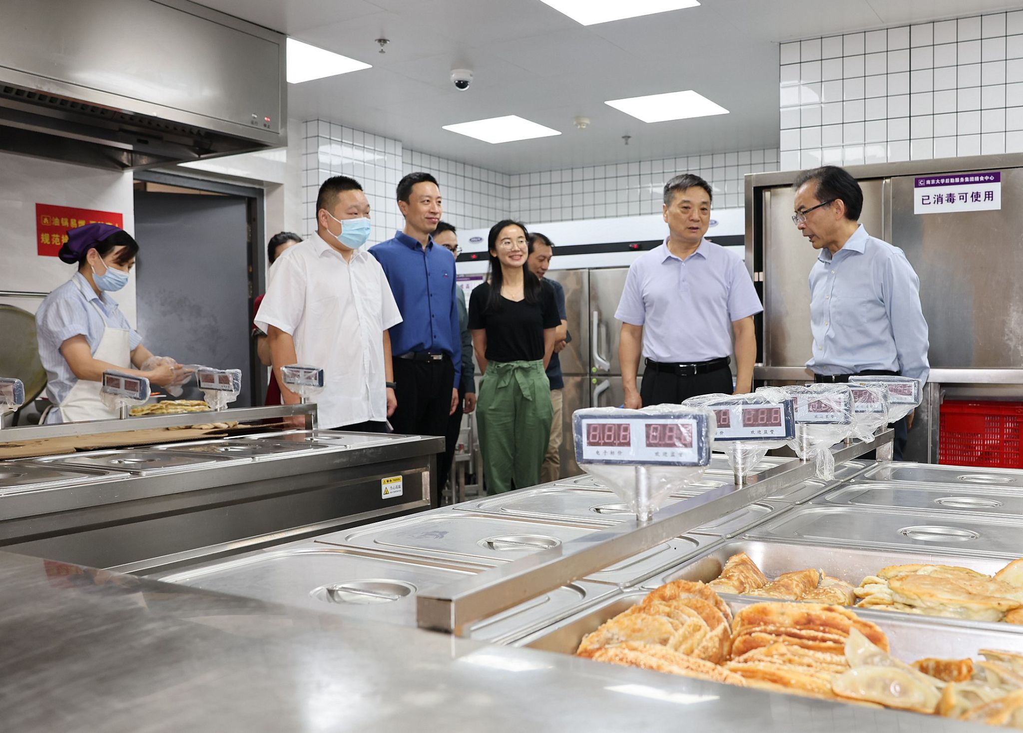 来到学生第一、第二食堂,谈哲敏详细询问食堂每餐平均用餐人数。他强调,假期期间要做好留校师生员工用餐保障。在后厨、米饭加工间、留样冰柜等地,谈哲敏与工作人员细致交流,嘱咐他们要进一步增强安全生产管理,注意消防安全系统定期检测,以及食品与明火作业安全。