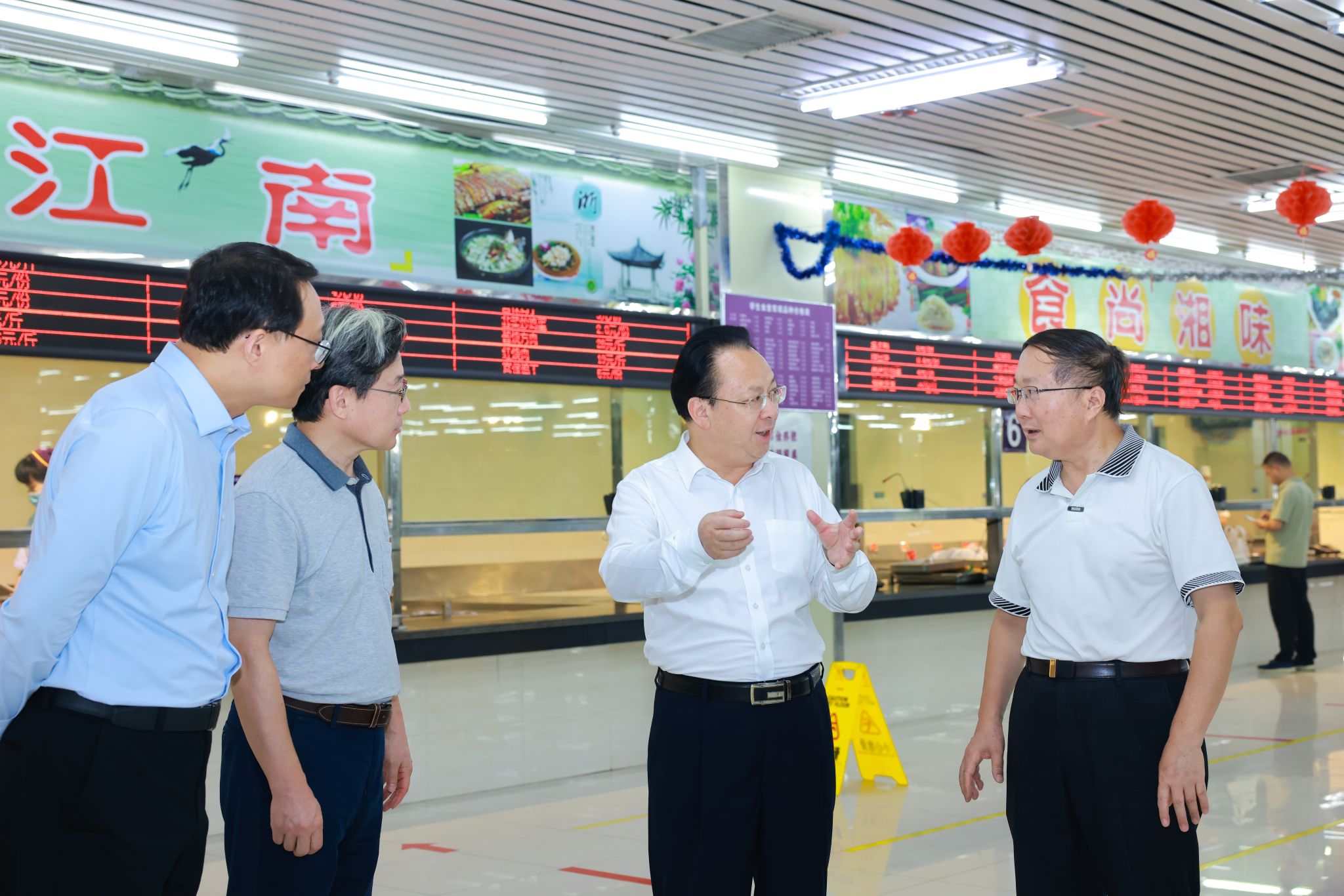在第十一餐厅,谭铁牛看望相关后勤工作人员。他强调,要进一步增强食品安全意识、加强食品安全管理,深入了解师生需求,不断完善餐厅的膳食管理、设备管理等相关工作,为广大师生教职工创造安全、卫生、舒心的购物和就餐环境。