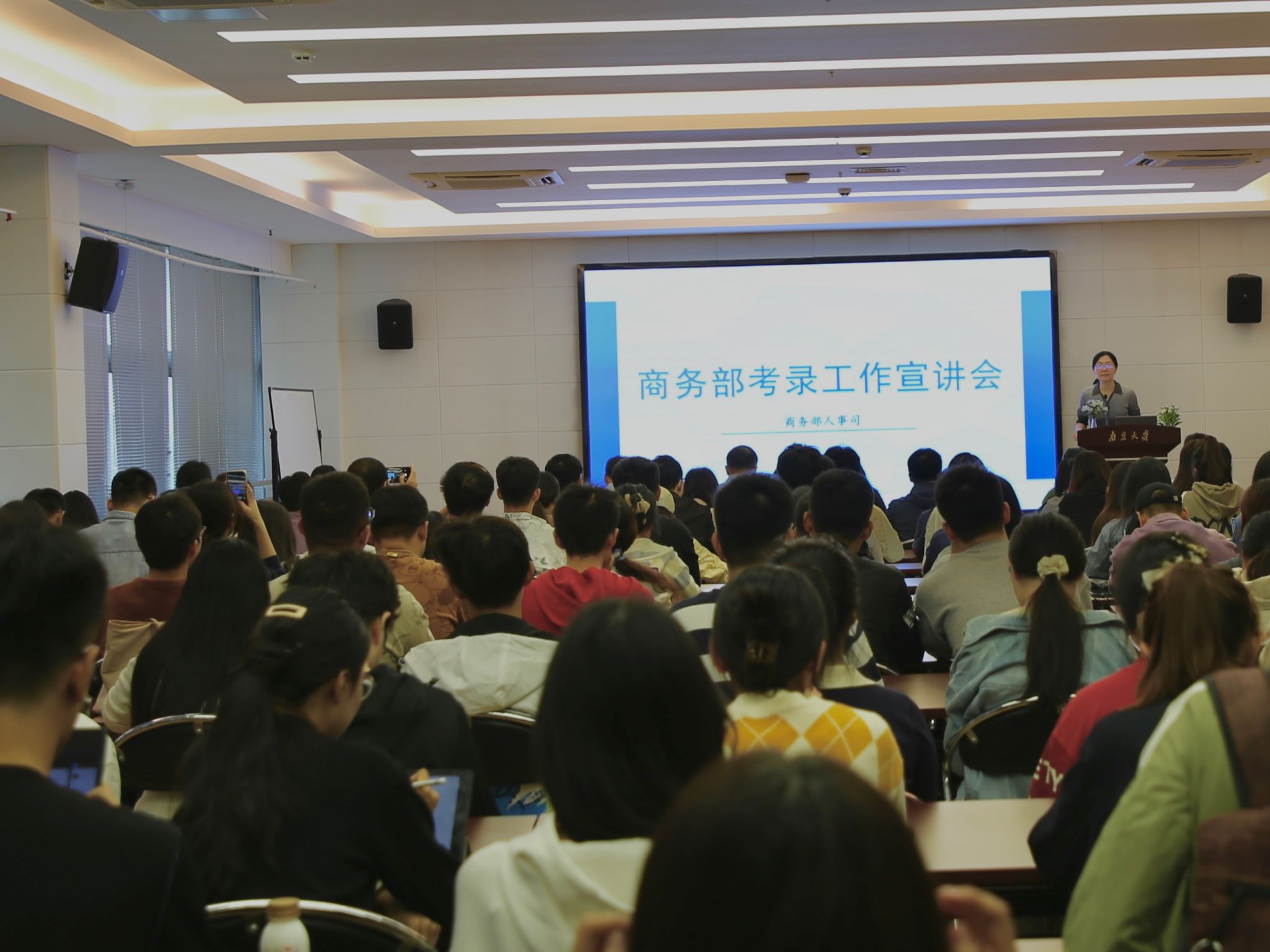 宣讲会上,李抒音以《来自商务部2023年新录用公务员的一封信》的微电影为开头,介绍了“商务部是一个什么样的单位”,指出商务部既是干部发展成长的多元平台,更具有广阔的发展前景,欢迎凯发k8官网的同学积极、踊跃报考。