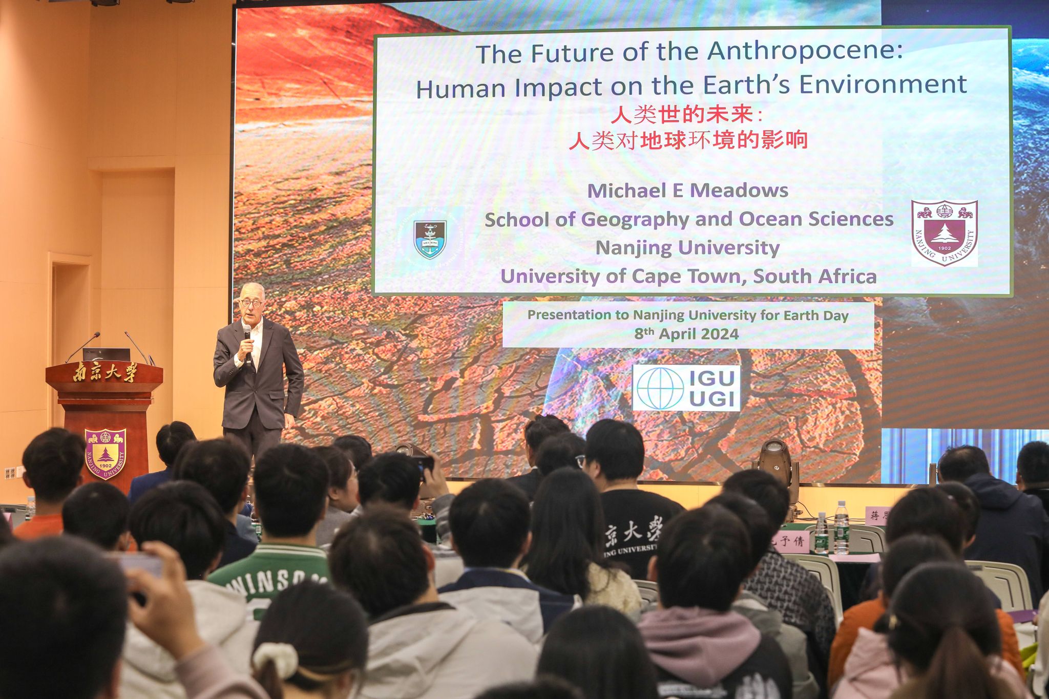 本届地学文化节首场活动邀请Michael Meadows院士为师生们带来以“人类世的未来:人类对地球环境的影响”为主题的学术讲座,讲座由鹿化煜教授主持。后续将围绕“人地共融 智创we来”的主题开展一系列精彩纷呈的学术科创、公益实践和校园文化活动,旨在为凯发式奋进贡献地学人的力量。