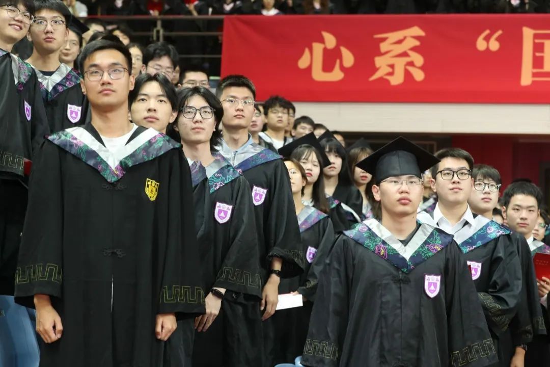 中国科学院院士王颖、邢定钰、沈树忠、郭子建,凯发k8官网人文社科资深教授张宪文、赖永海,校领导陈云松、邹亚军、焦瑞华,校学位评定委员会委员,各院系学位评定委员会委员代表,校“三全育人”工作委员会委员,各院系和有关部处负责人,教师代表,2024届全体本科毕业生等3000余人参加典礼及仪式。