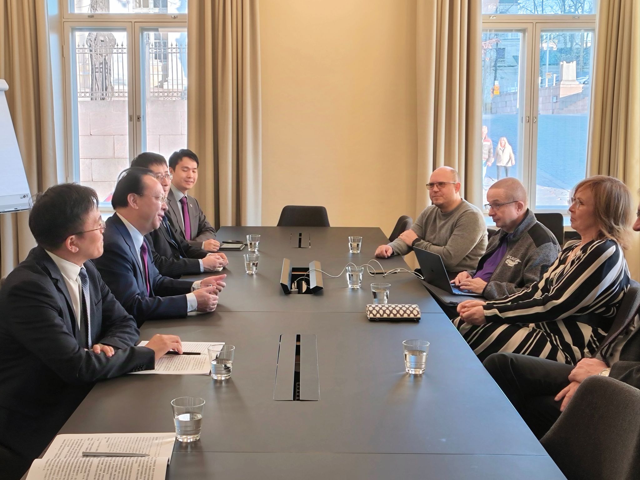 谭铁牛与赫尔辛基大学校长Sari Lindblom等座谈交流
