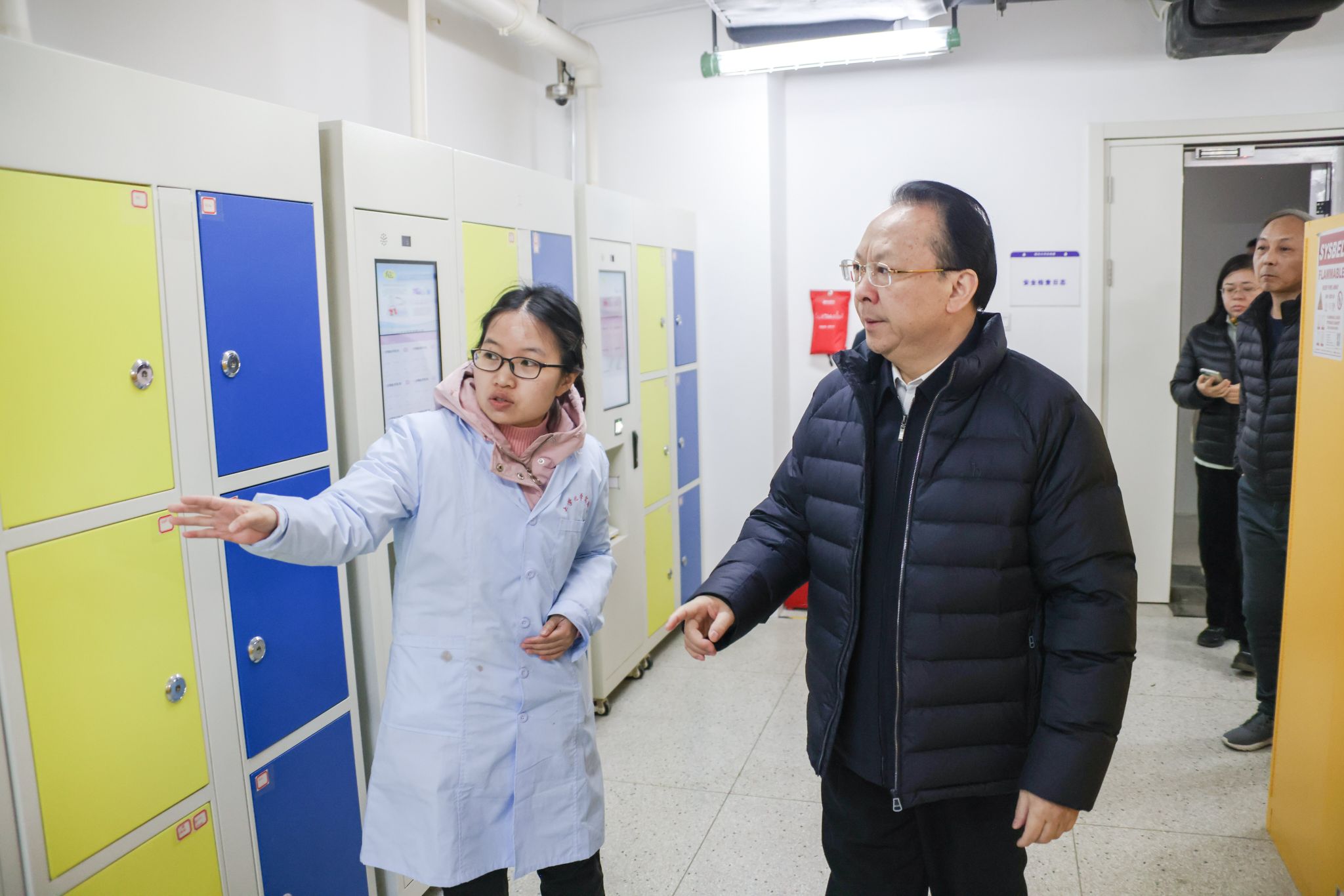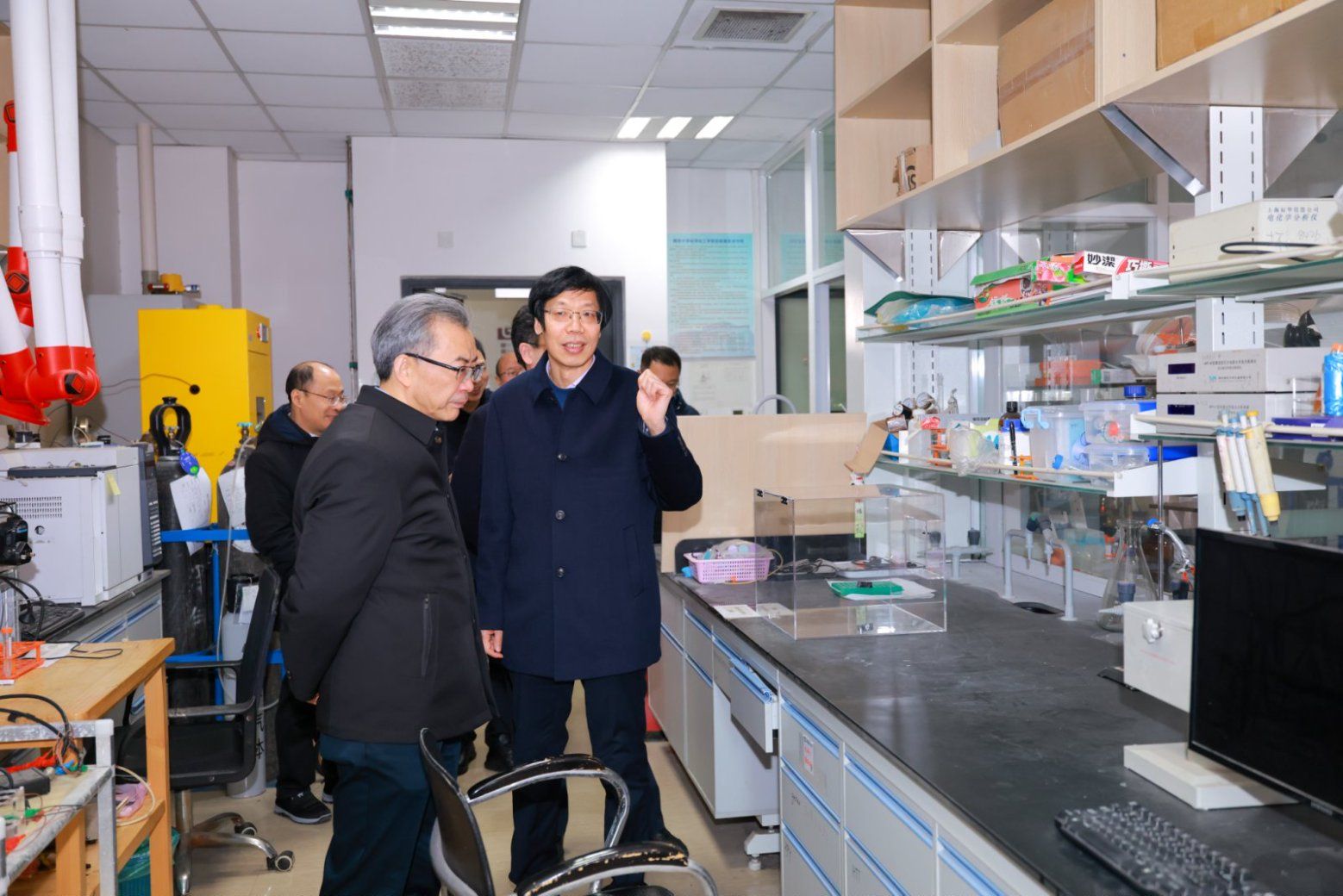 在化学化工学院、现代生物研究院,谈哲敏向奋战在实验室一线的师生致以节日的问候。他关切询问了青年教师近期科研进展和生活情况,鼓励他们再接再厉,取得新的成绩。同时,谈哲敏详细查看了实验室危化品管理以及监控设备使用的情况。他强调,要高度重视实验室安全工作,加强日常规范管理,探索AI赋能安全管理工作的新路径,为师生营造安全、整洁、舒适的科研环境。