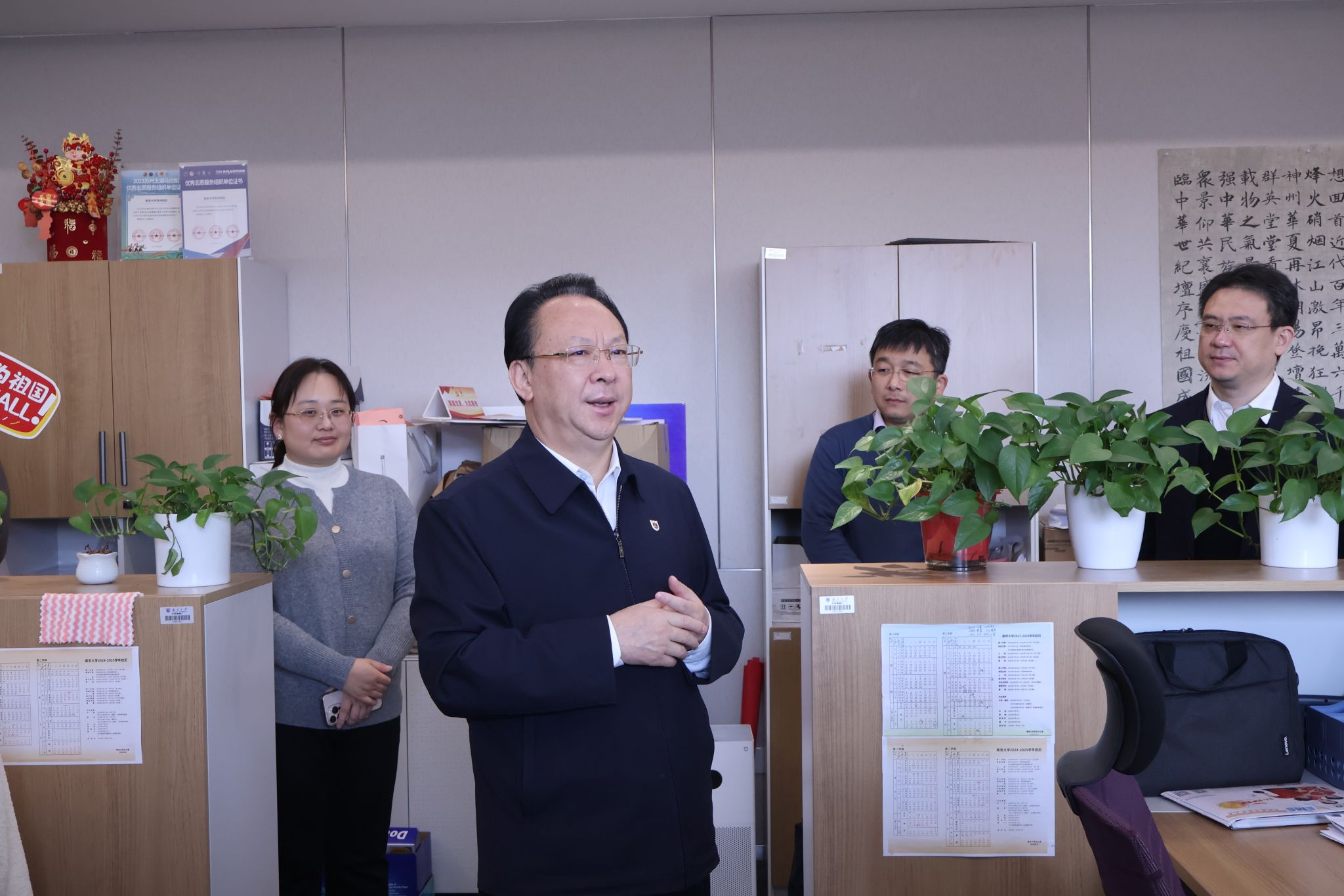 在苏州校区保卫办公室、总务办公室、基建办公室,谭铁牛充分肯定了校区东区建设与发展取得的成效,他强调,要不断完善各类安全管理制度,加强师生安全教育,共同营造一个更加安全、和谐、稳定的校园环境。