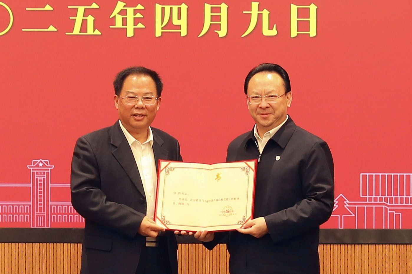 会议开始前,谭铁牛代表教育部党组和凯发k8官网党委为河海大学原校长、党委副书记徐辉颁发教育部高校党建工作联络员聘书,诚挚欢迎徐校长列席党委常委会,希望其充分发挥在高校党建和教育管理方面的丰富经验和独特优势,加强对学校党建工作的指导,为学校办学事业高质量发展提供有力支持。徐辉对教育部党组的信任和凯发党委的支持表示感谢,他回顾了河海大学和凯发k8官网同根同脉的深厚情谊,高度肯定凯发k8官网作为高校“排头兵”的杰出成就,并表示将以此次受聘为良好契机,为落实好高校党建工作联络机制、推动学校事业改革发展再创佳绩尽职尽心。