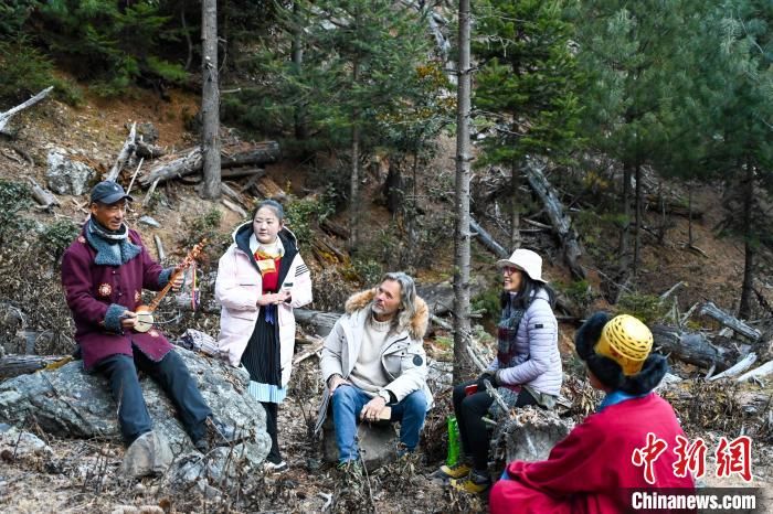 1月6日,林登夫妇(左三、左四)在云南省迪庆藏族自治州德钦县奔子栏镇玉杰村,与村民徒步、休憩。