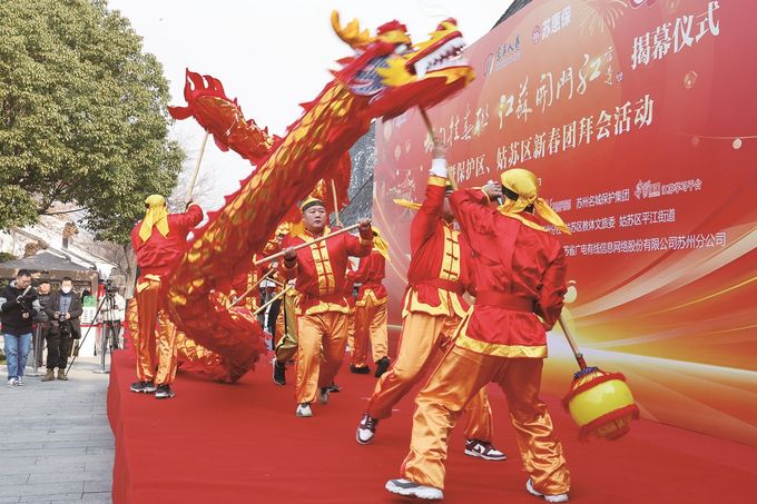 延续多年的“城门挂春联 苏州开门红”活动,也成为展示苏州古城保护更新成果的一扇窗。作为全国首个也是目前唯一的国家历史文化名城保护区,去年以来,保护区、姑苏区扛起“保护好、挖掘好、运用好”重要使命,接续推动古城保护发展,积极打造“中华文明建设的示范区”,“赓续古城历史文脉 焕发江南文化魅力——江苏省苏州市姑苏区实施32号街坊保护更新项目”入选《习近平文化思想实践案例选编(2024年)》;累计8项做法列入住建部复制推广清单,为全国最多;古城保护更新研究项目摘得国际规划学界最高奖项。时光流淌,苏州古城在保护更新、活化利用中焕发出新的精彩,人气、商气持续走高。