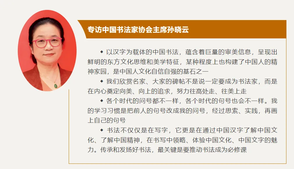 孙晓云:书法的传承跟文化传承一样,仅仅靠大脑认识、靠耳朵听、靠嘴巴讲,远远不够,一定要动手写、动手实践。