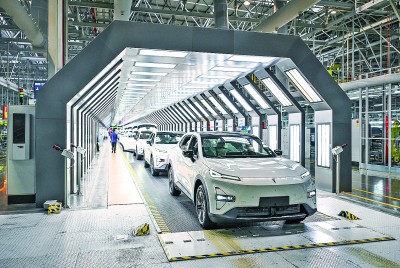 2025年1月9日,重庆市渝北区的长安汽车数智工厂总装车间内,即将下线的新能源汽车。新华社发