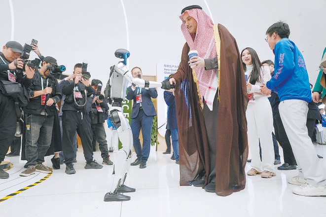 2025中关村论坛年会开幕式现场展示的智能机器人等多种科技成果引起中外嘉宾极大兴趣。