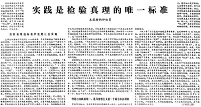 1978年5月10日,中央党校内部刊物《理论动态》发表了经胡耀邦审阅定稿的《实践是检验真理的唯一标准》一文。5月11日,这篇文章以特约评论员名义在《光明日报》发表。随后,全国各大媒体陆续转载。胡福明是在5月11日早晨做饭时,在电台广播中听到这个消息的。当天,胡福明找来报纸反复阅读了好几遍,发现见报稿在自己所交稿件基础上又做了一些修改,比如标题增加了“唯一”二字,内容上也增加了一些文字。胡福明十分感谢后来帮助对此文做进一步修改的同志们,他们提高了这篇文章的理论水平,增强了战斗力!