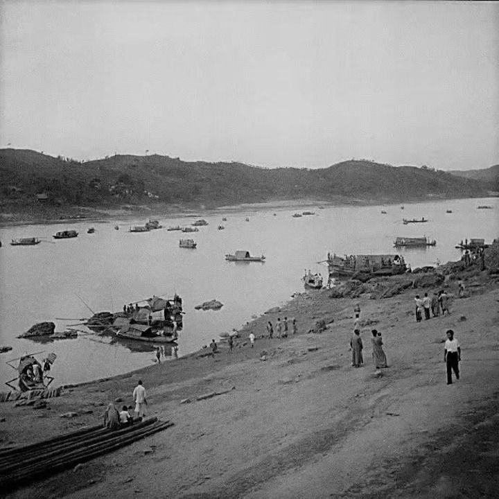 科研机构、高校内迁李庄时在码头搬运行李的老照片。(李庄古镇景区管委会供图)