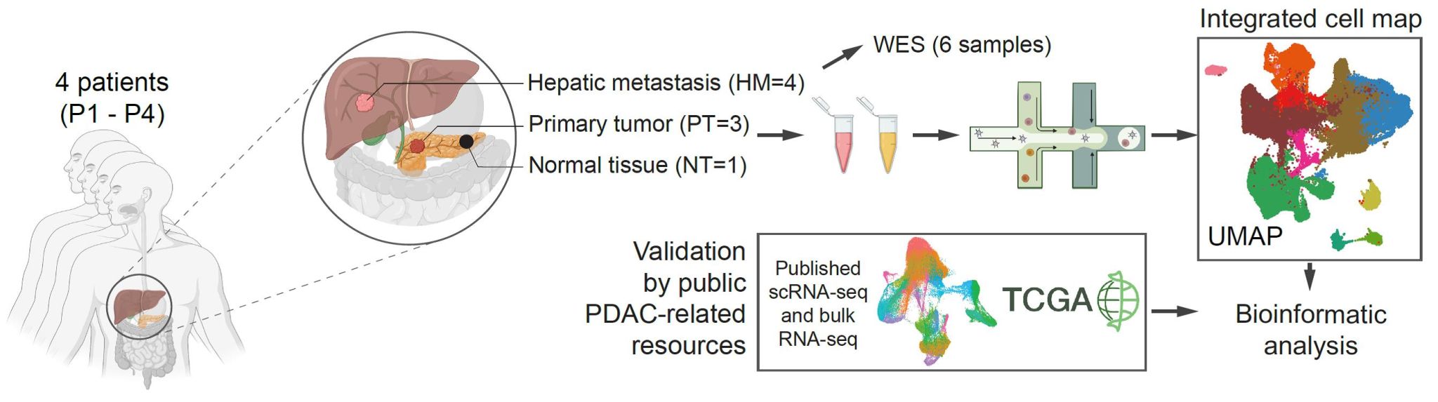 凯发k8官网吕瑛等研究人员对4名经病理诊断为PDAC并伴有肝转移的患者的8个新鲜组织进行了单细胞转录组测序,并且对公共数据库进行了深入挖掘。