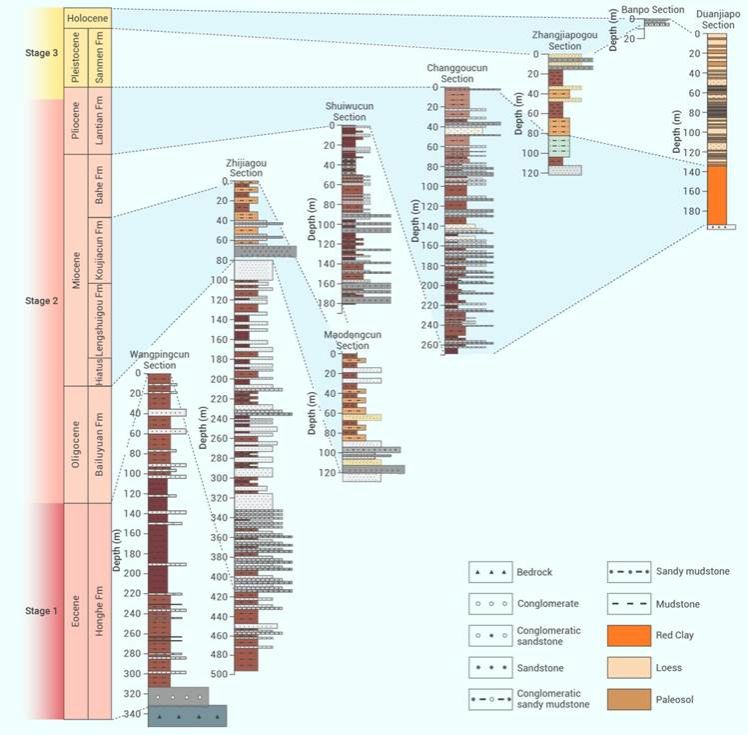 图2. 陕西中部渭河盆地(关中平原)沉积记录揭示了50 Ma来地貌、气候、水文、植被和土壤变化