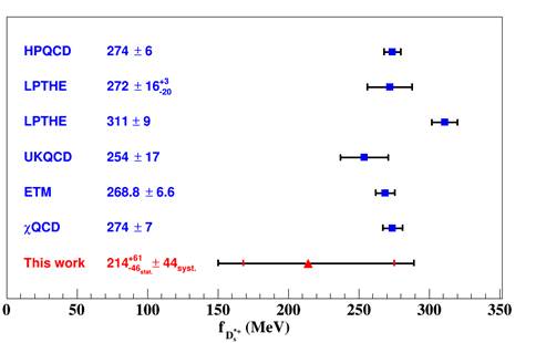 图2:本实验测得衰变常数与LQCD理论计算对比。