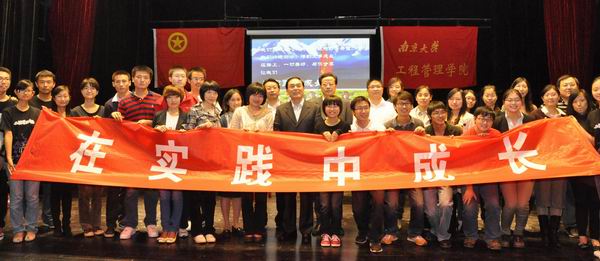10月19日下午,一场别开生面暑期社会实践分享会、同时也是“我的支部我的团”新生主题开放团日之一和工程管理学院新生形势政策课在仙林校区大学生活动中心小剧场成功举行,6支团队以不同的方式切入教育过程、以不同的视角观察教育话题,并与在场300多位同学分享了自己的实践历程和收获。校长陈骏,校党委常委、宣传部长朱庆葆,校团委、工程管理学院、校区办、社会学院的代表和各院系团委书记也应邀参加了此次活动。