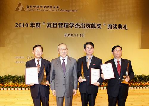 “复旦管理学杰出贡献奖”是由李岚清同志于2005年以个人稿费作为原始基金发起成立的,其宗旨是奖励我国在管理学领域做出卓越成绩和杰出贡献的工作者。“复旦管理学杰出贡献奖”素有中国管理学界的“诺贝尔奖”之称,每年依次循环在管理学的三个子领域“管理科学与工程”、“工商管理”和“公共管理”进行评奖,2010年度的评奖领域为“工商管理”。自2006年至今已有15位在管理科学、工商管理和公共管理领域有杰出贡献的学者获此殊荣。
