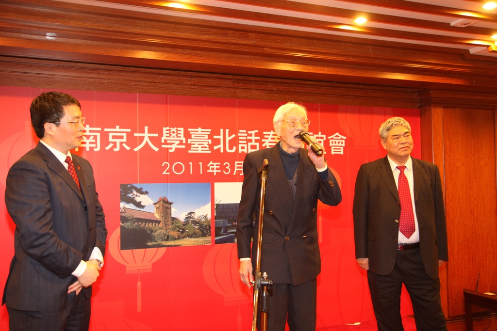 多次来我校交流的台湾著名财经专家刘忆如,台湾师范大学校长张国恩,台湾中央大学副校长李诚,永丰银行董事长邱正雄,亲民党秘书长秦金生,中视集团董事长林圣芬,李国鼎数位知识促进会理事长陈棠,金陵大学台湾校友会会长孙永庆,金陵大学老学长、著名诗人余光中,金陵大学百岁老学长叶炎荣,台湾新亚建设股份有限公司董事长邹宏基等众多知名人士和新老校友以及海基会、台湾大学、政治大学等机构和大学的代表出席了联谊会。