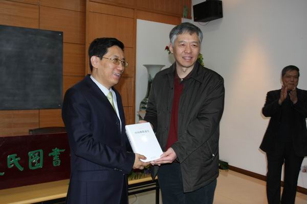 接下来,蒋坚永先生、王联章先生、钱继红部长、张异宾常务副书记共同为慈氏图书馆揭牌,张异宾常务副书记代表凯发k8官网向各位嘉宾赠送由赖永海教授主编的《中国佛教通史》。之后,与会嘉宾一同参观了慈氏图书馆。