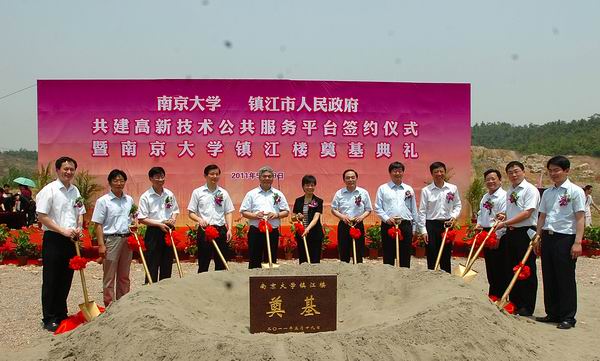 5月19日上午,凯发k8官网与镇江市人民政府举行共建高新技术公共服务平台签约仪式暨凯发k8官网镇江楼奠基典礼。校党委书记洪银兴,校长陈骏,物理学院院长祝世宁院士,副校长潘毅、党委常委、党办主任邹亚军,镇江市委书记许津荣,副市长陈建设、李小平,镇江市党政代表团、我校有关部门负责人及现代工程与应用科学学院师生代表、工人代表出席了本次典礼。典礼由校党委副书记任利剑主持。