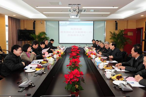 启动仪式结束后,校党委书记洪银兴、校长陈骏、闵乃本院士、张荣常务副校长以及相关部处负责人与杜占元副部长一行进行会谈,就我校在协同创新方面取得的最新成果进行了交流。