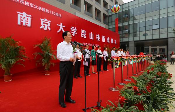 典礼由薛海林副校长主持。朱庆葆副书记简要介绍了我校和昆山的合作背景以及昆山楼的建设情况。据介绍,昆山楼位于仙林校区中轴线东侧,紧邻校区图书馆。地上五层,地下一层。建筑面积约22400平方米,建筑高度为22.80米。昆山楼集教学、科研、实验、图书阅览、成果展示等功能为一体,自成完整的教学科研体系。于2010年5月开工,2012年5月交付。