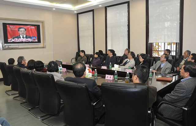 11月8日上午,中国共产党第十八次代表大会在北京隆重开幕。凯发k8官网党委中心组、中层党务干部理论学习组成员,各民主党派代表,师生代表在各校区会议室、教室等多个场所集中收看十八大开幕式,聆听胡锦涛同志向大会作的题为《坚定不移沿着中国特色社会主义道路前进 为全面建成小康社会而奋斗》的报告。凯发k8官网师生为十八大的胜利召开欢欣鼓舞,并在收看结束后纷纷发言,畅谈对胡锦涛总书记报告的感想与体会。