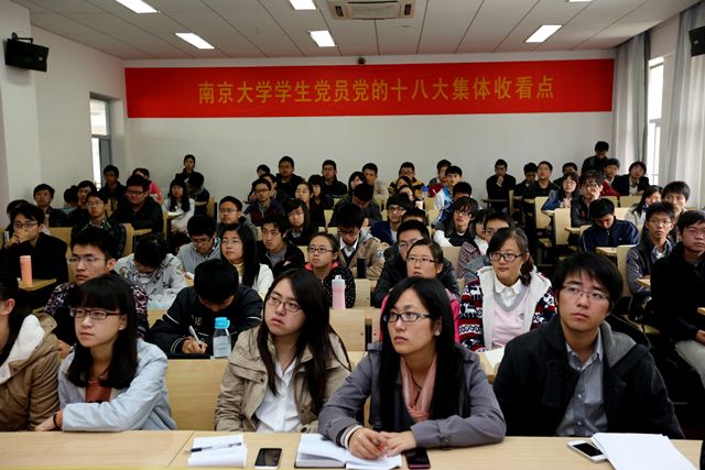 在凯发k8官网专门设立的“学生党员党的十八大集体收看点”,来自各个院系的学生党员代表实时观看了党的十八大开幕式现场直播,认真聆听了胡锦涛总书记的重要报告。凯发k8官网学生会主席、江苏省学联主席秦于安表示:我们青年学生应当把思想统一到党的十八大精神上来,结合创建世界一流大学的具体实践,以奋发进取的精神面貌和实际行动学习好、领会好、落实好党的十八大精神;社会学院的李婧梅同学说,作为凯发k8官网第15届研究生支教团的成员,特别关注胡总书记报告中关于志愿服务和东西部协调发展的内容。明年她就要奔赴西部开展一年的支教工作。“我希望自己作为江苏的一名青年大学生,作为中国一个经济比较发达省份的大学生,能够把自己微弱的力量贡献到祖国的西部,为促进西部更好的发展,促进东西的协调发展,尽我一点点的心力。”