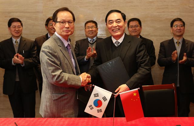 11月20日,陈骏校长热情会见宋熹永校长一行,并对校长即任后的首次来访表示感谢。陈校长感谢宋校长对于两校合作的高度重视,并对金敬姬董事长及前任金辰圭校长表达了亲切问候,陪同会见有我校濮励杰校长助理,以及来自海外教育学院、商学院、科技处及国际处代表。会见中,陈校长简要介绍了仙林新校区的发展情况,高度评价了此次建国大学国际贸易系与我校国际贸易系开展的本科双学位“2+2”合作项目。该项目实现了对海外留学生在本科阶段完整而全面的培养,是建国大学与凯发k8官网在本科生培养方面取得的突破性进展,它将成为两校国际交流方面新的合作亮点及创新型举措。陈校长希望双方继续巩固现有合作,大力开发包括新汉学计划在内的新的合作项目,积极推进两校双边关系的发展,促进未来双方交流与合作迈上新的台阶,并恳切邀请宋校长方便时再次来访我校。宋熹永校长高度评价了我校的学术地位、办学规模、师资水平及学科发展优势,并对两校目前已建立起来的密切合作关系深表荣幸。宋校长简要介绍了建国大学目前的发展规模、速度及国际交流情况,希望通过师生互访、合作协议的签署等方式进一步推进两校合作,不断扩大并深化双方在人文及社会科学领域内的广泛交流。最后,双方共同签署了两校商学院国际贸易系“2+2”本科跨国双学位项目协议。