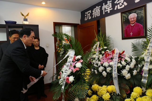 11月23日下午,陈骏校长一行前往丁光训主教生前寓所,沉痛吊唁丁光训先生。