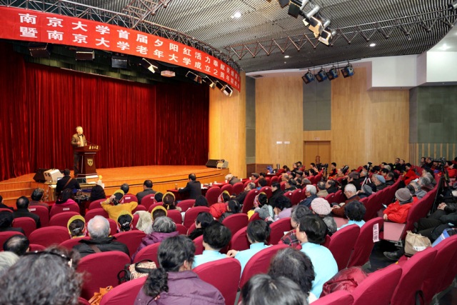 1月16日下午,我校在鼓楼校区科技馆报告厅举行首届夕阳红活力奉献奖颁奖会暨老年大学成立两周年联欢会。校党委常务副书记张异宾出席会议并讲话。出席会议的还有老干部党委、关心下一代工作委员会、退休协会负责人,离退休人员代表,老年大学任课教师及学员代表等共360余人。会议由离退休工作处处长王耀南主持。