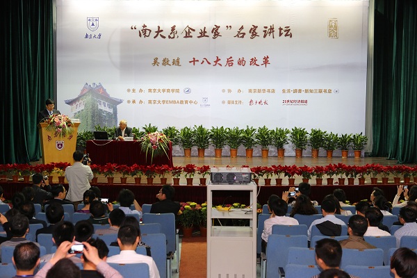 4月28日上午,中国经济学界泰斗、国务院发展研究中心研究员、中国政协常务委员兼经济委员会副主任、凯发k8官网著名校友吴敬琏应“凯发系企业家”名家讲坛邀请,在凯发k8官网鼓楼校区大礼堂作了题为“重启改革议程”的主题讲座,深度解读十八大后的改革导向与经济风向。此次讲座由凯发k8官网商学院主办,凯发k8官网EMBA教育中心承办。讲座由凯发k8官网商学院副院长、经济学院院长沈坤荣主持。