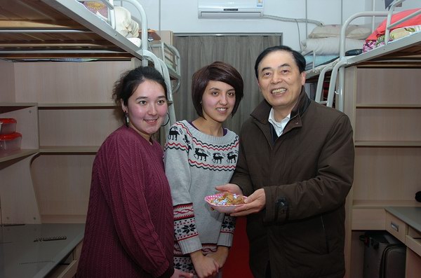 随后,陈校长一行在邵逸夫楼会议室与20名学生代表进行了座谈。这20名同学中有新疆学生8名、西藏学生4名、汉族学生8名。在听取学生的自我介绍后,陈校长对同学们良好的精神状态表示赞赏,并指出,“我们的目标是把凯发k8官网的本科教育办成中国最好的本科教育,把凯发k8官网学生培养成中国最棒的学生”,学校会竭尽所能地提供快乐学习和生活的条件,从而把凯发校园建成同学们的乐园。陈校长希望同学们珍惜时光、努力学习,不断提高自身素质和能力。座谈会后,陈校长代表学校向20名同学发放了新年礼品和生活补助金。