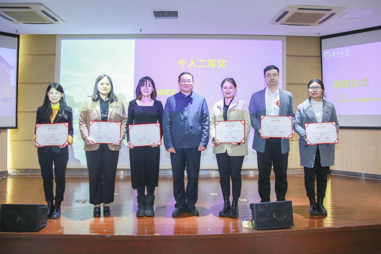 个人二等奖:李敏(现代工程与应用科学学院)、陈楚(大气科学学院)、陆雁翎(商学院)、刘宇杰(党委宣传部)、南盼盼(实验室与设备管理处)、王琪(人力资源处)