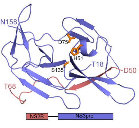 图注:寨卡病毒NS2B-NS3pro蛋白酶复合物的结构