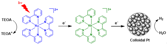 在能源和环境的双重困境下,太阳能的高效转换与存储成为科学家关注的焦点。基于金属络合物材料,利用太阳能分解水产生清洁燃料?氢能,一直是新能源领域的研究热点之一。它具有简单、高效率、和灵活性等优点而备受瞩目。在这类人工光合成系统中,金属络合物扮演着自然界光合作用中类似叶绿素的角色,络合物吸收太阳能后形成激发态,为太阳能-化学能的转换提供驱动力。近年来,凯发k8官网的研究团队在针对太阳能转换研究中利用金属络合物材料开展了一系列工作:为解决常用的Ir(III)金属有机络合物材料难溶于水、稳定性差以及体系中使用的催化剂多为贵金属等科学问题,设计和开发了亲水性Ir(III)光敏材料、中性Ir(III)络合物材料、双核Ir(III)光敏材料及过渡金属催化剂,有效地提高了太阳能转换体系的稳定性和活性,同时也降低了体系的成本。