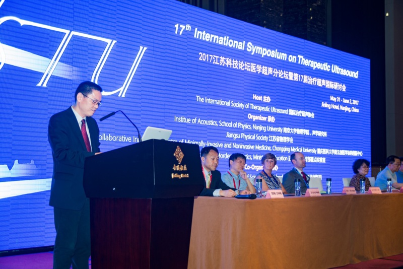 5月31日下午,2017江苏科技论坛医学超声分论坛暨第十七届国际治疗超声研讨会(17th International Symposium on Therapeutic Ultrasound,以下简称ISTU会议)开幕式在金陵饭店亚太商务楼举行。来自18个国家(地区)的105家著名科研院所、临床医院和医疗器械公司的300多名代表注册与会。
