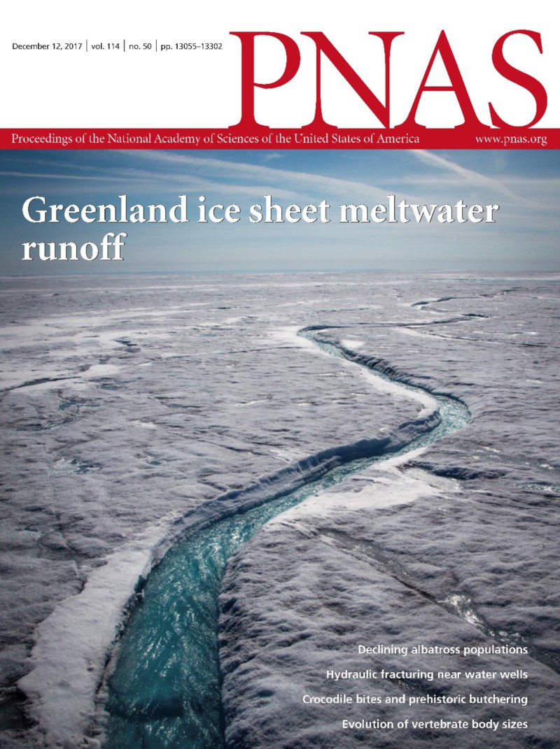 近日,地理与海洋科学学院杨康副教授在格陵兰冰盖水文研究方面取得重要进展,其成果“Direct measurements of meltwater runoff on the Greenland ice sheet surface”以封面文章的形式发表于2017年12月12日出版的Proceedings of the National Academy of Sciences (PNAS)上(DOI: 10.1073/pnas.1707743114)。这项研究是国际科技合作的成果,研究人员来自于10余所国际知名科研机构,杨康副教授是论文的共同第一作者。