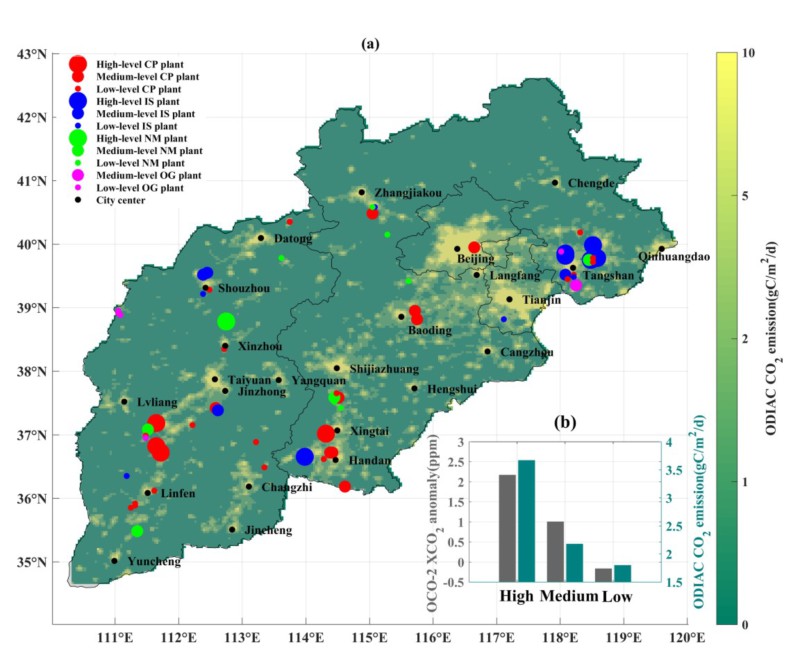 Wang, S., Zhang, Y., Hakkarainen, J., Ju, W., Liu, Y., Jiang, F., & He, W. (2018). Distinguishing anthropogenic CO2 emissions from different energy intensive industrial sources using OCO‐2 observations: a case study in northern China. Journal of Geophysical Research: Atmospheres, 123. https://doi.org/10.1029/2018JD029005.