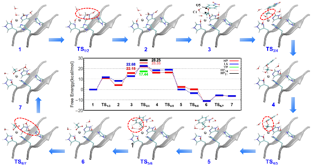 图2. 不同序列多肽的催化机理及反应势能面
