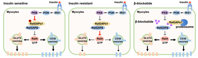 综上,该项研究发现了胰岛素通路远端分子RalGAPα1是骨骼肌糖脂代谢以及胰岛素抵抗发生中的关键因子,为2型糖尿病的药物研发提供新思路和新分子靶点。目前,作者正在β-阻遏多肽进行深入测试与模拟改造,期望将来能成为靶向骨骼肌、治疗代谢疾病的原型药物。
