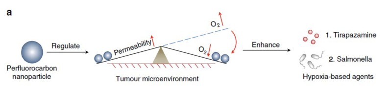 大多数肿瘤在生长过程中会出现不同程度的乏氧,而乏氧是导致肿瘤转移和耐受的重要原因之一。因此,在肿瘤治疗中,清除乏氧肿瘤细胞对预防肿瘤复发和转移尤为重要。乏氧依赖性药物则是在乏氧条件下起效的一类物质,主要包括乏氧性细菌、乏氧性前药(如:沙门氏菌、替拉扎明)等。这些物质可与其他抗肿瘤手段联合,清除乏氧肿瘤细胞,防止肿瘤复发和转移。然而,临床上联合乏氧依赖性药物对肿瘤的疗效并不理想,这主要是由于肿瘤的乏氧部位渗透性差,药物浓度过低所导致的。尽管已经有一些手段可增加乏氧药物的渗透性,然而,渗透性增加必然伴随着氧气浓度增加,反而降低了乏氧药物的疗效。