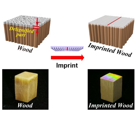 提升天然材料的功能和性能,拓展其现代应用,将对社会的可持续发展起到重要的推动作用。木材具有良好的生物降解性,且来源丰富。然而,长期以来,植物作为生命体受限于生长尺寸、缺陷、兼顾生命需求等,其性能不能满足现代需求,从而使得其应用长期局限于传统的建筑、家具等领域。表面微纳结构是很多光学、光子学等器件的基础,在木材的表面实现微纳结构的调控,将实现其光学、光子学等材料和器件的应用,发展完全生物降解、可抛弃的环境友好材料与器件。然而,木材是由纵向排列的细胞构成的多孔结构,微米尺度的粗糙表面难以形成纳米结构。此外,木材的主要构成材料天然纤维素没有热塑性。因此,在木材表面实现精密的微纳结构仍是一个挑战。