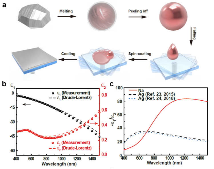 图1 金属钠等离激元薄膜的制备和测量的介电常数。