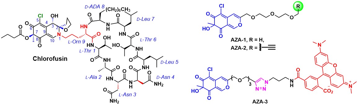 图1. 阿扎菲酮类型天然产物Chlorofusin研究开发的分子工具AZA-n系列.