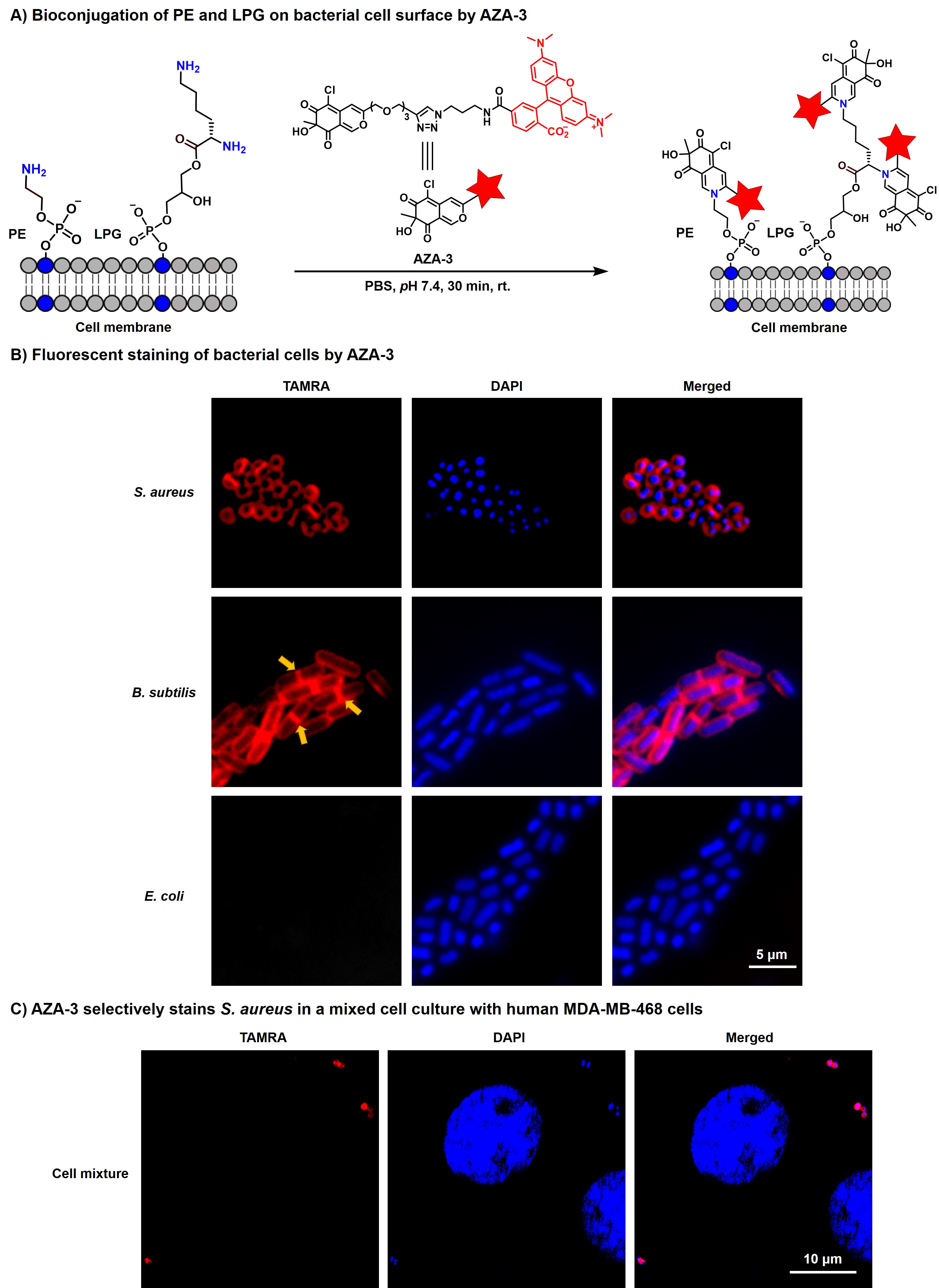 2. 工具分子AZA-3用于细菌氨基磷脂修饰及对革兰氏阳性菌的选择性荧光染色实验.