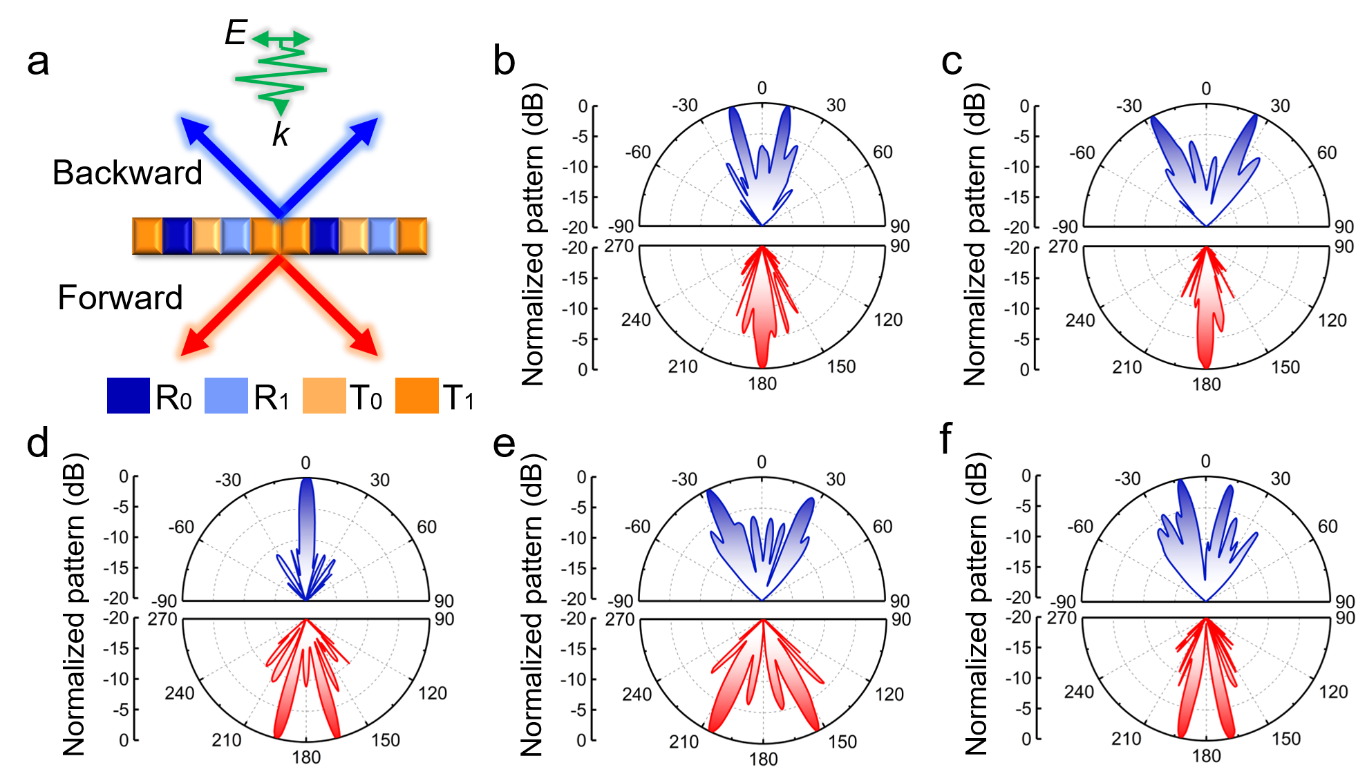 应对以上挑战,凯发k8官网电子科学与工程学院冯一军教授团队提出了智能全向超表面(Intelligent programmable omni-metasurface)新概念,可在同一频率、同一极化通道集成透射、反射电磁波动态调控功能(图1)超表面由透射-反射控制层和相位调控层构成,通过切换透射-反射控制层中有源器件的工作状态可决定超表面单元以透射模式或反射模式调控电磁波,通过切换相位调控层内有源器件的工作状态可使超表面在对应工作模式实现动态相位调制。在此基础上,通过联合调控两层结构,可使超表面分别工作为反射、透射和全空间模式(同时实现反射和透射波束控制)(图2),从而主动调节适应背向半空间、前向半空间、全空间内的无线通信用户需求